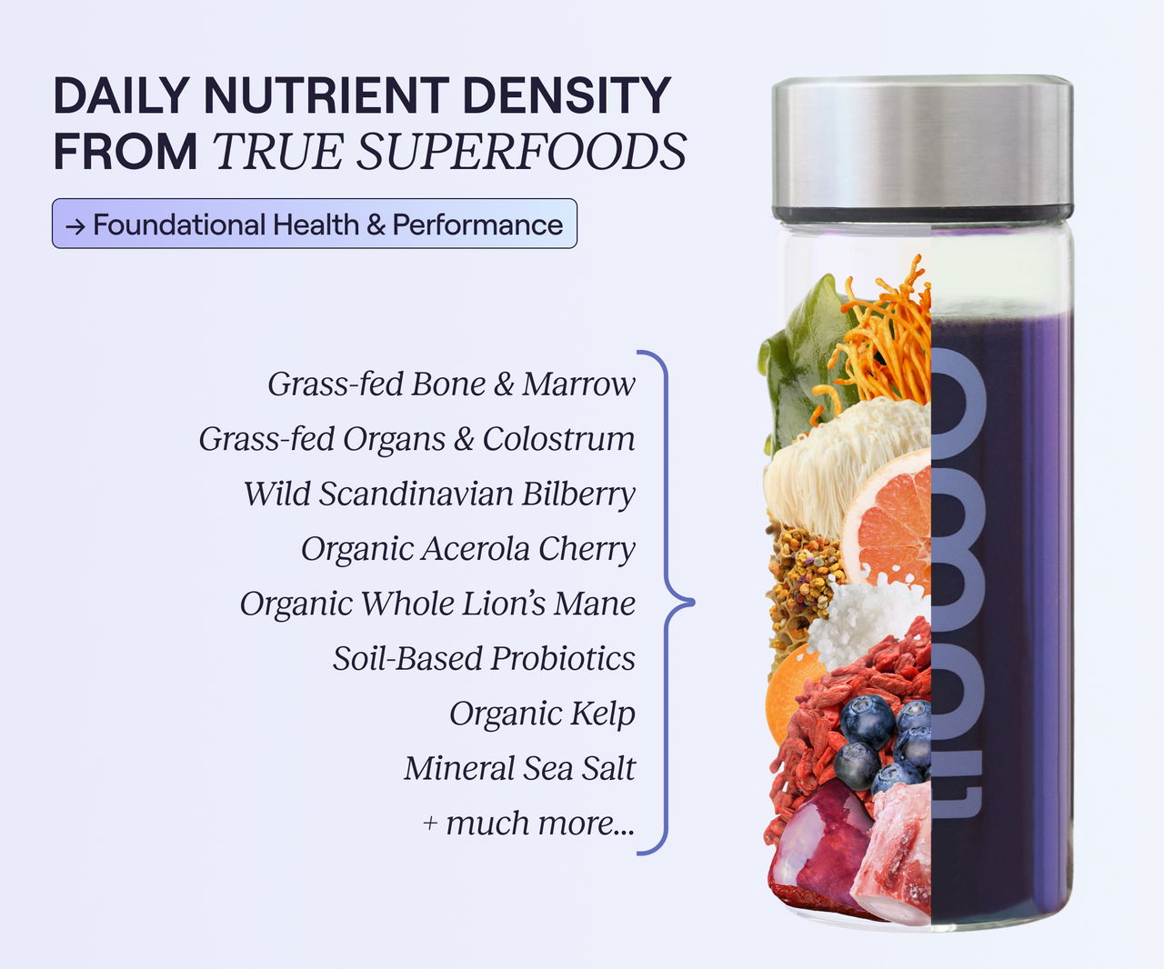 OMNI¹ is daily performance nutrition that works by returning humans to our peak natural state. Every ingredient is backed by peer-reviewed research and carefully curated to replace what's missing most in modern life.